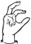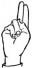 На ћирилици написано ОЛГА КАЗИМИРОВИЋ састоји се из 15 слова [?]. Исписано ћириличном једноручном азбуком за глувонеме: